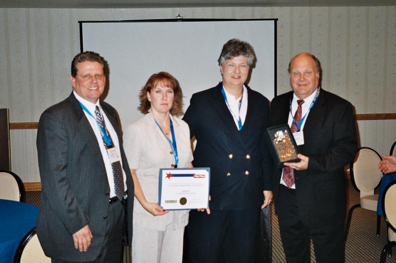 Dr. Charles A. Watts and Carol Ptak with Ptak Prize winners, Cary Cameron, Vice President of GENCO, and Mr. David Blazek, Vice President and General Manager of LeTourneau, Inc
